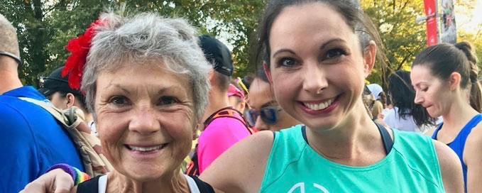 At Mile 21, the crowds thinned out, as did the shade provided by buildings, and I realized I had hit “the wall” that I had heard so much about. My mom reminded me that my new friend and fellow bird Mary, would be at Mile 22. I began sobbing when I saw her, telling how hot and tired I was. She gave me a powerful pep talk, ran alongside me and then gently pushed me (literally) back into the race.