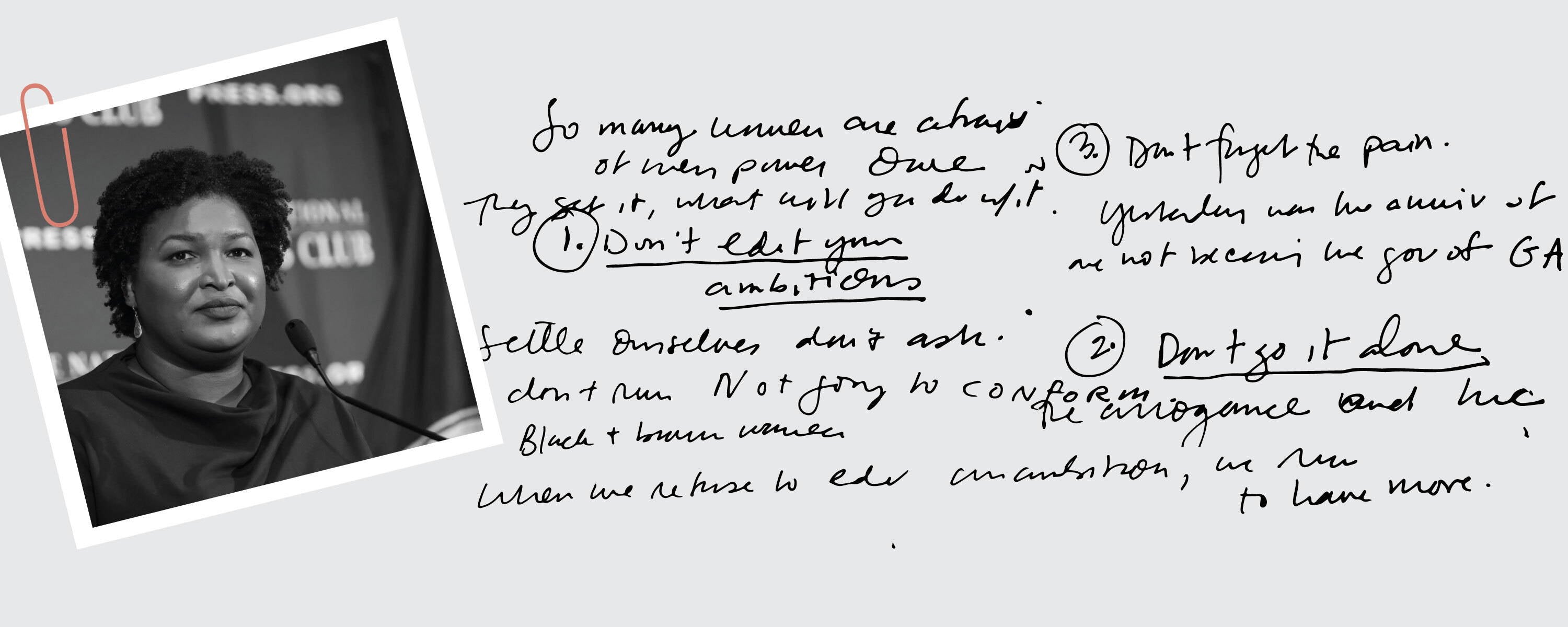 “Yesterday was the one-year anniversary of my not becoming the Governor of Georgia. What my Mom and Dad told me: the pain is okay. If we’re not okay with the pain, it makes the reason we went through what we did not as important. The reason more women start small businesses is because the system doesn’t have a place for us. The pain of that makes us stronger, fiercer, makes us better. I cultivate and use my pain.”