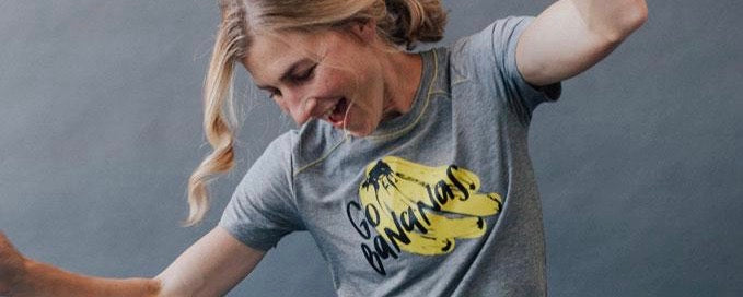 If you choose fashion, we have this killer tee. And a Go Bananas dance choreographed by none other than Lauren Fleshman (who knew the woman ALSO had banana dancing skills?) IF THAT WASN’T ENOUGH, no Oiselle web order will go unshipped without a Go Bananas sticker, starting today (while banana supplies last).
