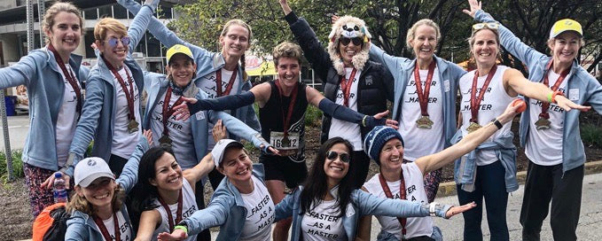 - Masters women get shit done. Apparently, once a woman reaches her 40’s she can pretty much do anything.* Hotel room with key transition plan for each team to get 2-3 hours horizontal time? Check. Personal laminated direction cards for each runner, each leg? Check. Work conference calls DURING THE RELAY? Check. Manage kid pickup from sports to social activity, 1,000 miles away? Check. Prepare for deposition? Check. Change a tampon in the van? Check. Make infinite chicken jokes? Check.