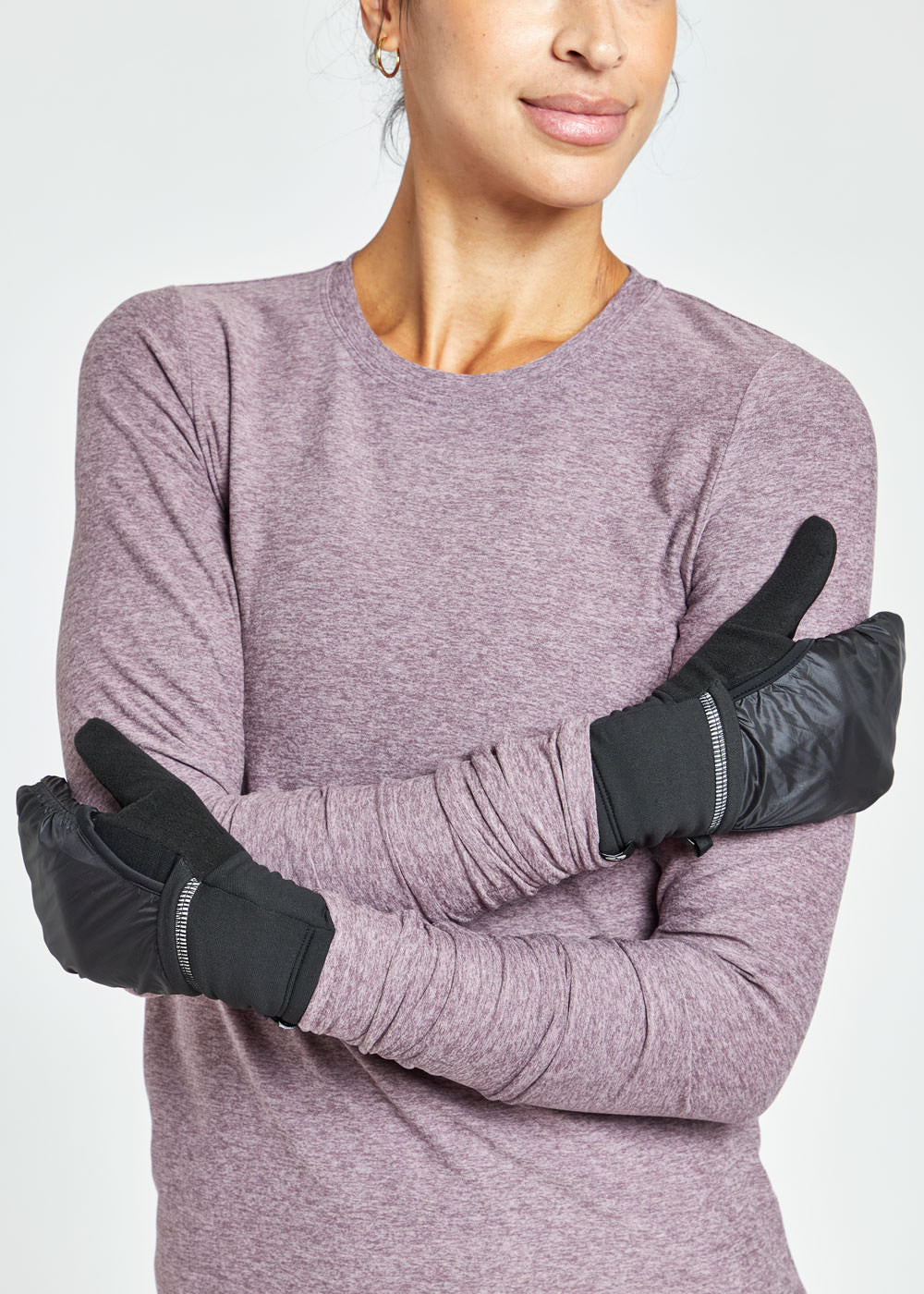Weather-resistant Mitten Hood: Stowable hood for when cold weather turns to wind and rain