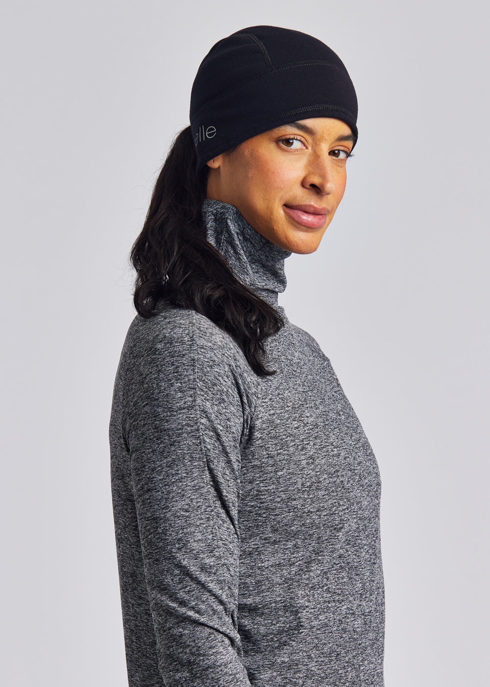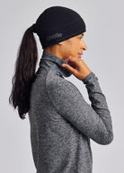 Winter-weight beanie made from PowerStretch warms and wicks with reflective detailing