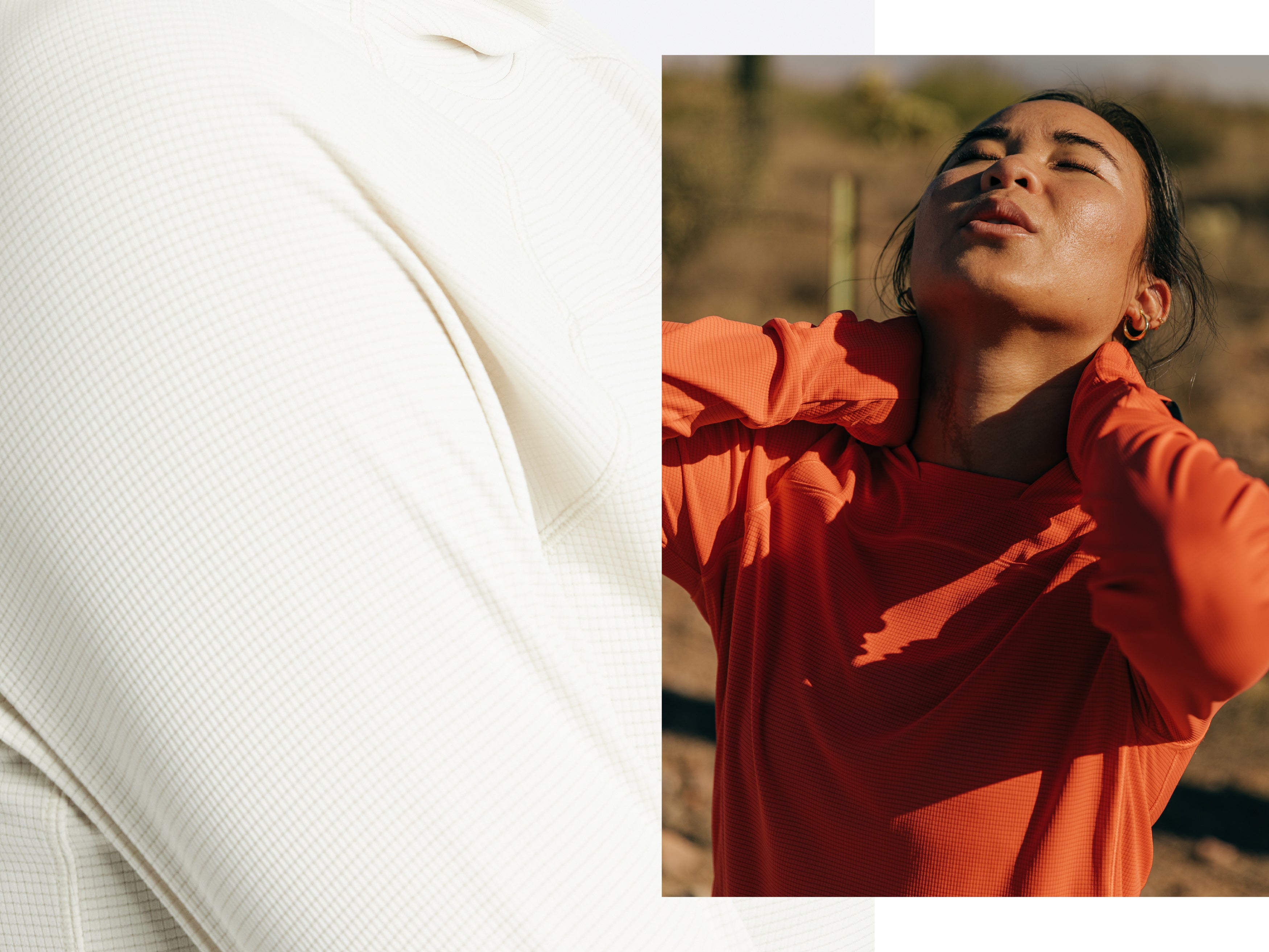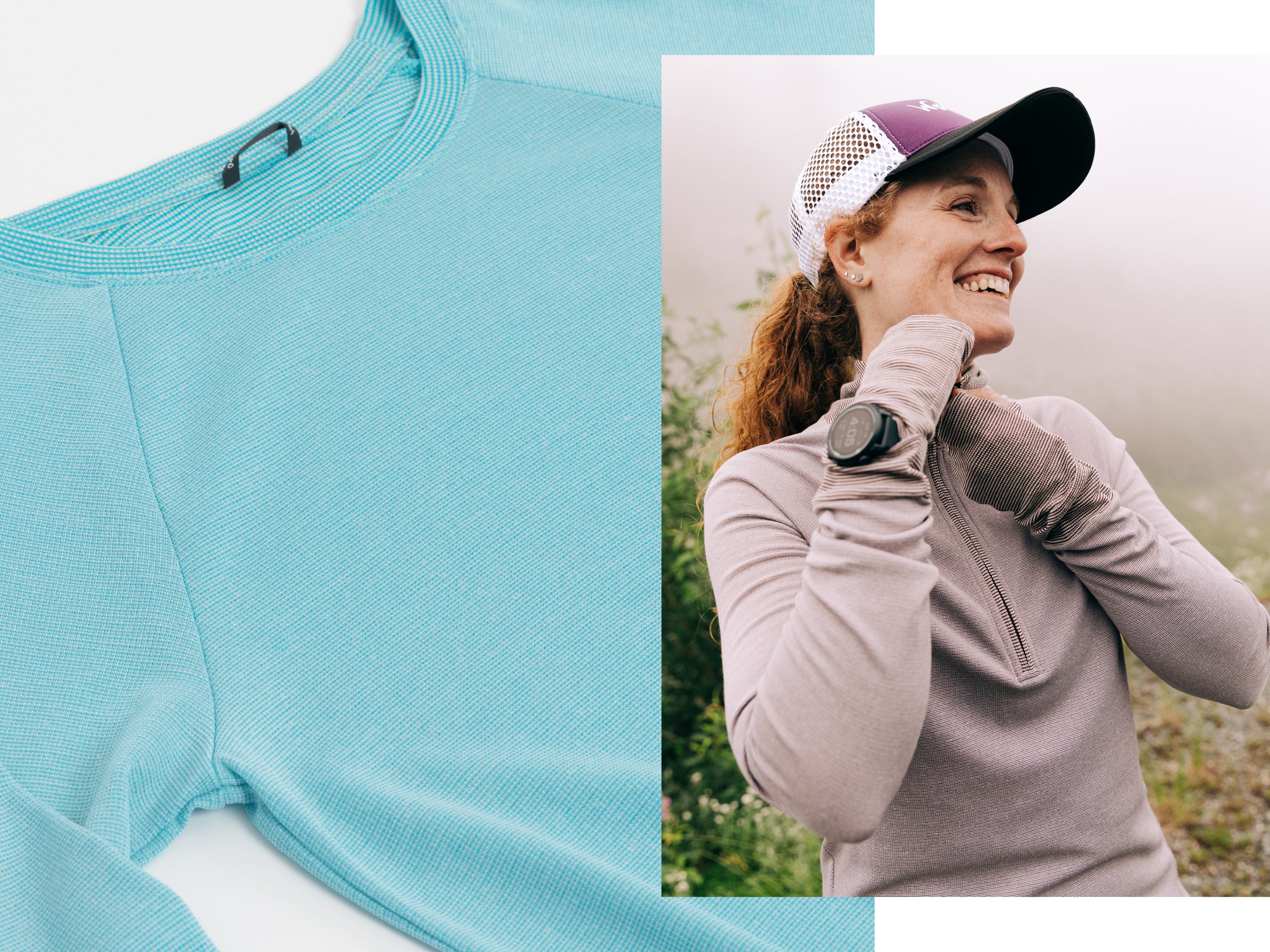 Meet Flyout Chill, the newest–and most technical–addition to our fabric lineup yet, designed to keep you cool and protected on even the hottest runs. Pieces in our Flyout Chill Collection are made with innovative Brrr° Triple Chill Effect® technology that utilizes cooling minerals within the fabric that kick into action once you start heating up for a continuous cooling effect. That means washing and wearing will never ruin the effect, since it’s integrated directly into the fibers. Additionally, this quick-drying fabric is enhanced with 50+ UPF protection, keeping your skin safe when you’re out in the harshest conditions or the most exposed terrain.
