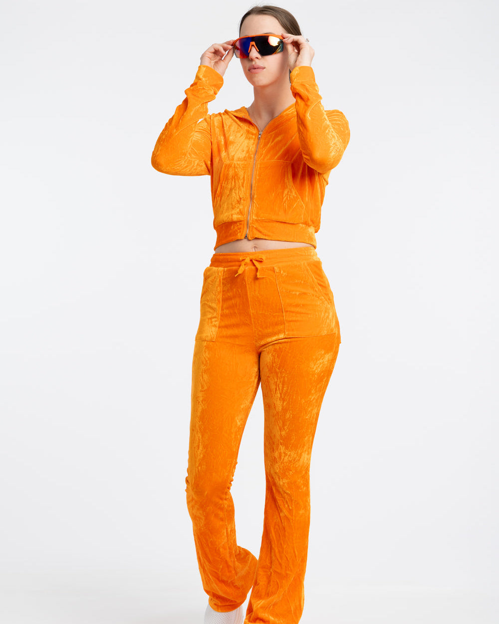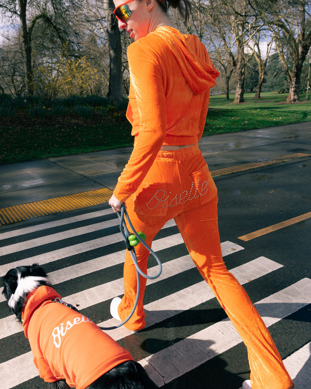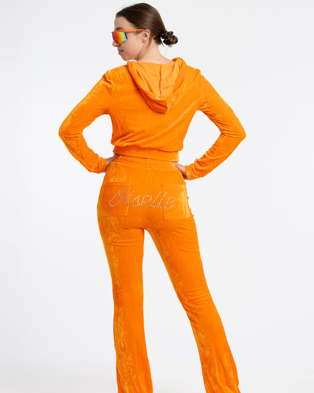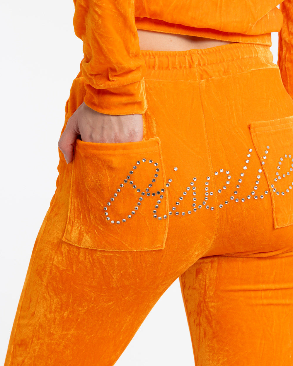 From 5K to Y2K, rest day just got a whole lot more fetch. Ultra-low rise flared velour bottoms (the perfect rise to show off your performance-first, moisture-wicking running thong!) feature cheeky bedazzling. The cropped track jacket (ideal for wearing open to showcase your Ed Hardy tank) tells everyone you meet that you're not just a regular runner, you're a cool runner. Pair with the Runner Trucker for premium 2000s vibes. Paris and Nicole could never!